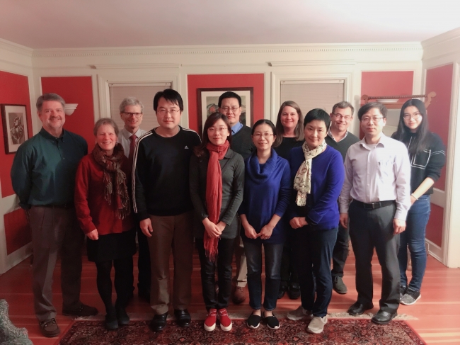 我院教师邓泓、张勇、柳欣源与瓦萨学院副校长Jon Chenette(左三)及其他教师们合影