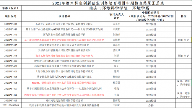 2022年4月6日下午1:00起,生态与环境科学学院开展了2021年度本科生创新创业训练培育项目的中期检验以及延期市创项目的结题验收评审会。受疫情影响,本次评审会采用线上腾讯会议的形式,分2场进行:环境学系评审老师由邓晶晶、王兆慧、徐启新组成,共审阅16个科创项目;生态学系评审老师由邓杰、伏玉玲、邢丁亮组成,共审阅12个科创项目。