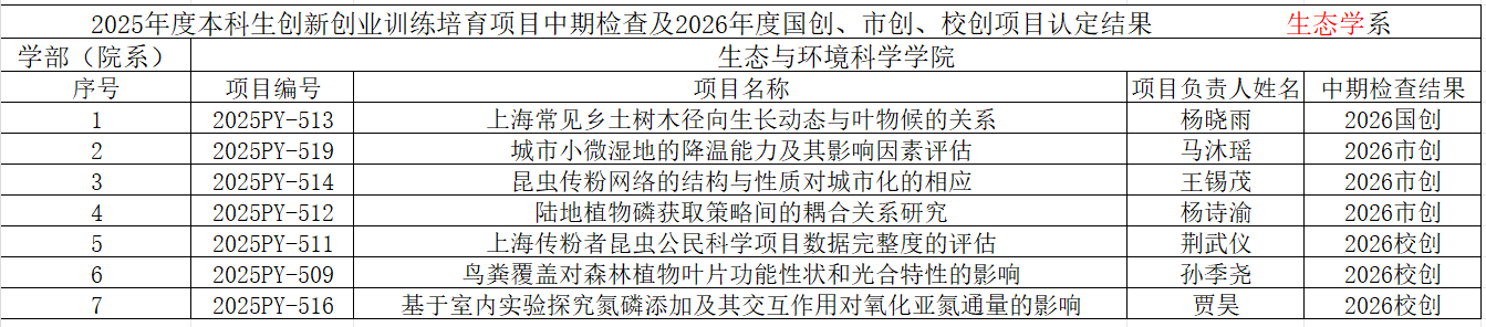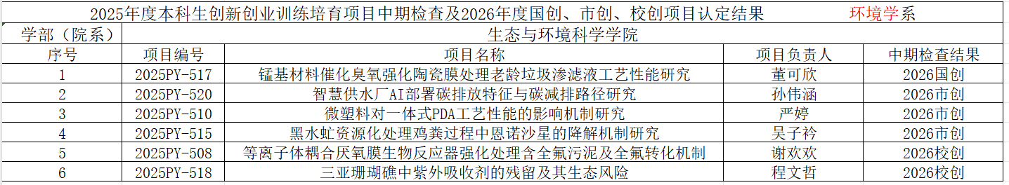 本次评审工作根据项目的创新性、开展进度与阶段性成果进一步将2025年度培育项目划分成国创、市创、和校创三种类型,学院初审结果公布如下(最终结果以本科生院公布名单为准):