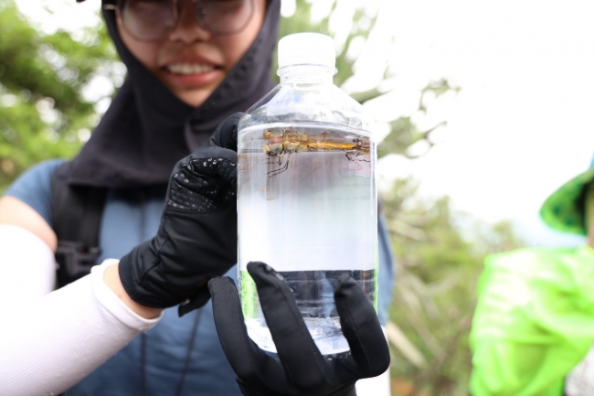 随后,师生们在站长宋清海的带领下,参观了元江站控水样地,目前该样地主要进行降水对林地影响的控制实验。最后,植物组的同学们在元江干热河谷生态站副站长张树斌,学院院长陈小勇,教授阎恩荣、张健的指导下,从选样地、拉样方、对不同植被类型进行调查学起,完成了自己的生态野外独立调查“首秀”。不同调查目的的样地选择方式不同,而拉样方考验的是对科研工作的严谨程度和同伴间的相互协调,这些生态学家们早已驾轻就熟的基本技能,对每一位新手同学来说,却是一项不小的挑战。动物组的同学则在学院教授斯幸峰的指导下,通过采集昆虫标本,观察鸟类,设置红外线相机等,对元江站动物多样性进行调查。14位同学认真听讲,相互协作,在艰苦的野外工作中共同学习、共同成长。元江独特的地形地貌,造就了它独特的生物多样性,生态野外调查虽然艰苦,但由大自然带来的绮丽风光,却成为了生态人特有的幸福。