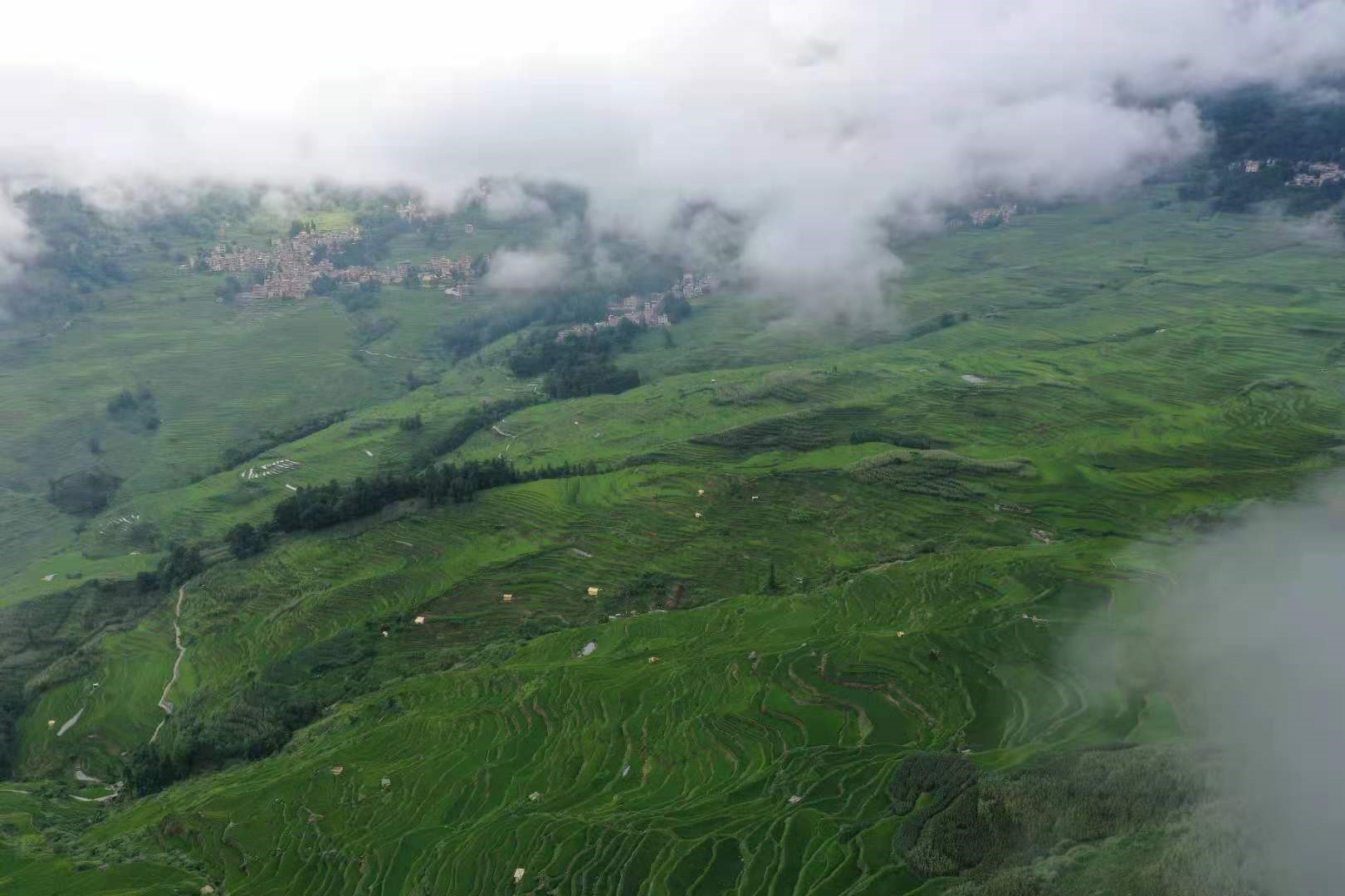 结束元江站的行程后,《丈量美丽中国》师生来到了位于云南省红河州元阳县哀牢山南部的元阳梯田。作为典型的农耕生态文明奇观,以红河哈尼族为主的各族先民早在1300年前就已经开始利用当地“一山分四季、十里不同天”地理气候条件创造出了梯田耕种模式,凸显了改造自然、利用自然的生态文明智慧。在元阳梯田,师生近距离观察了元阳众山在亿万年中被红河、藤条江水系深度切割,形成的中部突起、两侧低下、山地连绵、层峦叠嶂的“V”形地形地貌,也深度理解了“天人合一”的自然之理。绵延起伏、层层叠叠的梯田如一幅巨型山水画格外让人沉醉,本为挣脱自然束缚而产生的“无奈之举”,最终演变成了让人流连忘返的美景,无疑也是大自然的恩赐。